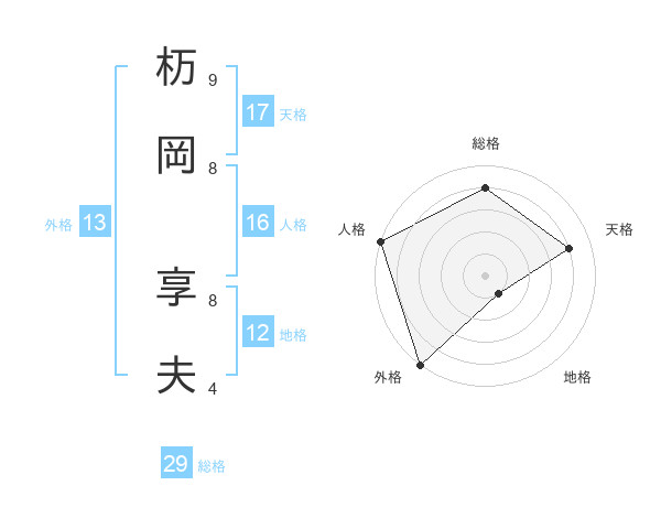 杤岡 享夫さんの外格は13画の5点!