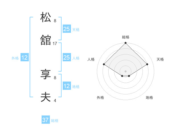 松舘 享夫さんの総格は37画の5点!