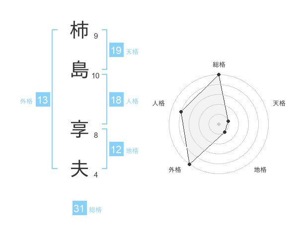 柿島 享夫さんの総格は31画の5点!