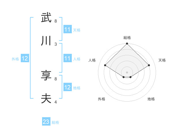 武川 享夫さんの総格は23画の5点!