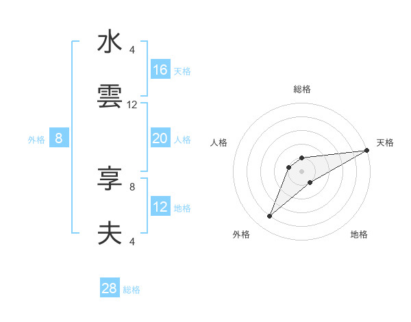 水雲 享夫さんを姓名の画数から五運を鑑定