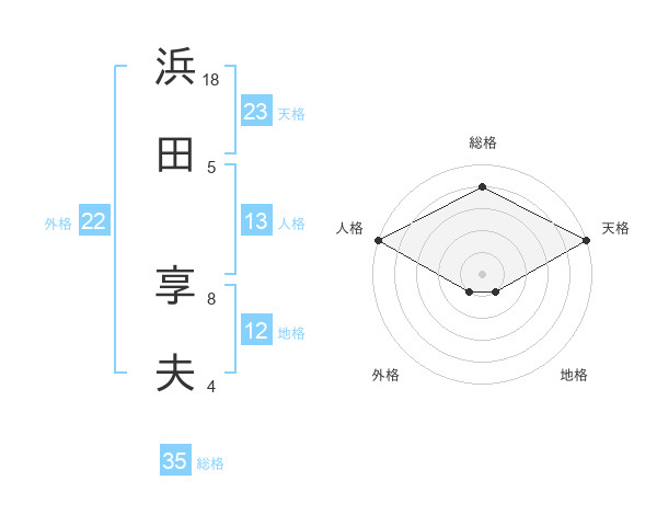 浜田 享夫さんを姓名の画数から五運を鑑定