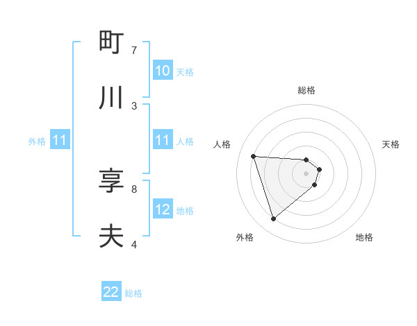 町川 享夫さんの人格は11画の4点!