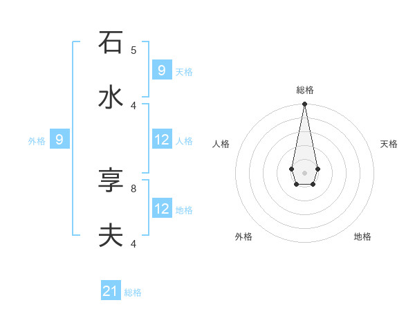 石水 享夫さんの総格は21画の5点!