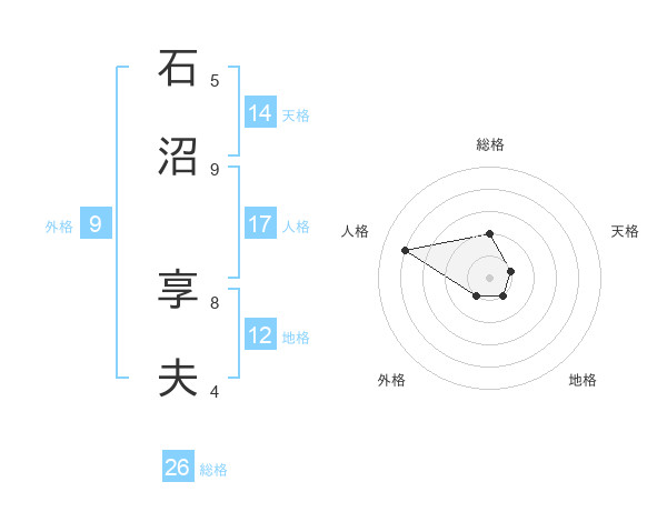 石沼 享夫さんを姓名の画数から五運を鑑定