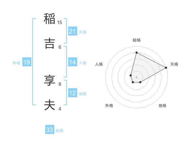 稲吉 享夫さんの天格は21画の5点!