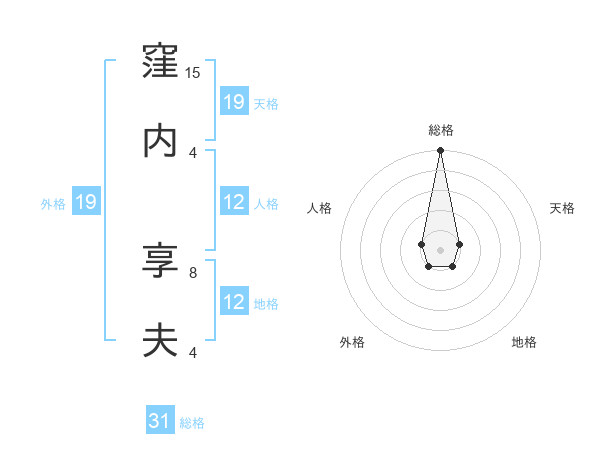 窪内 享夫さんの総格は31画の5点!