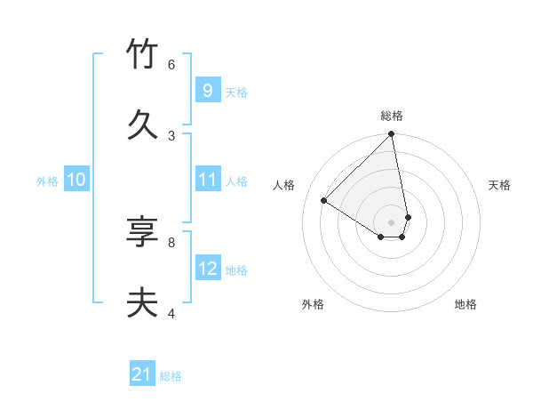 竹久 享夫さんの総格は21画の5点!