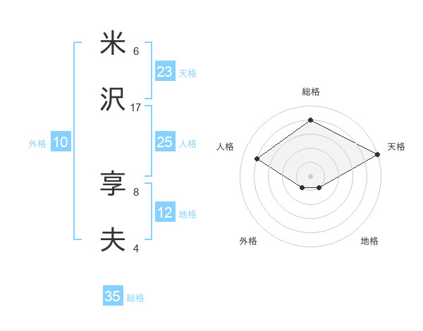 米沢 享夫さんの天格は23画の5点!