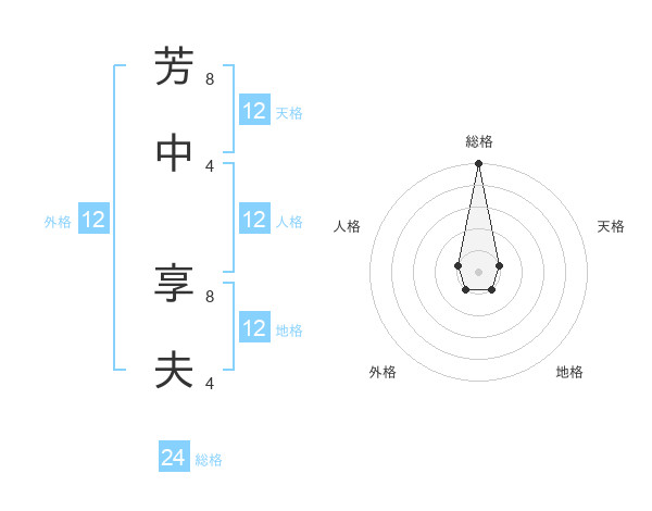 芳中 享夫さんを姓名の画数から五運を鑑定