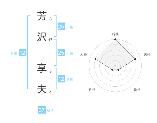 芳沢 享夫さんを姓名の画数から五運を鑑定