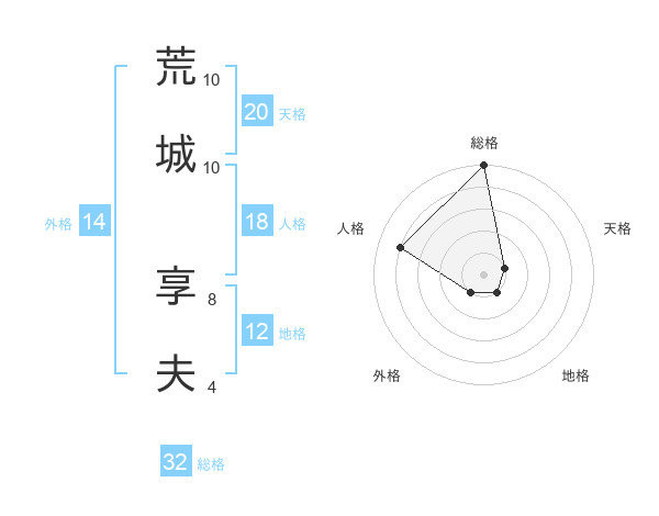 荒城 享夫さんの総格は32画の5点!