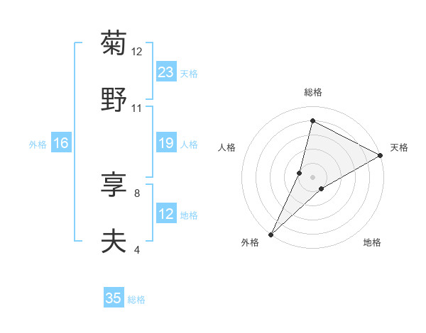 菊野 享夫さんの天格は23画の5点!