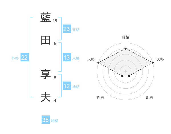 藍田 享夫さんの総格は35画の4点!