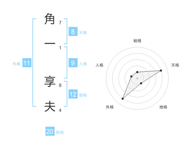 角一 享夫さんの総格は20画の1点