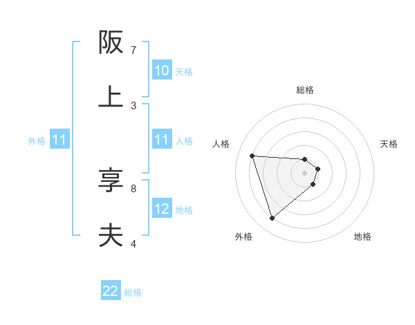 阪上 享夫さんの外格は11画の4点!
