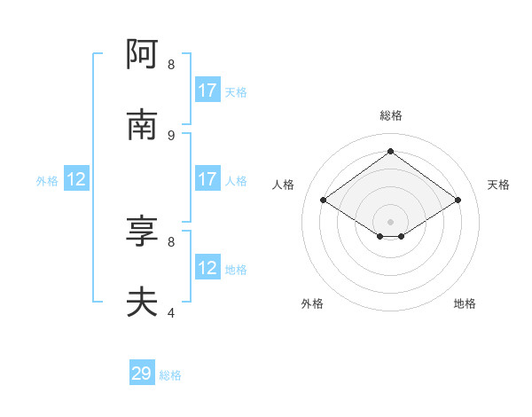 阿南 享夫さんを姓名の画数から五運を鑑定