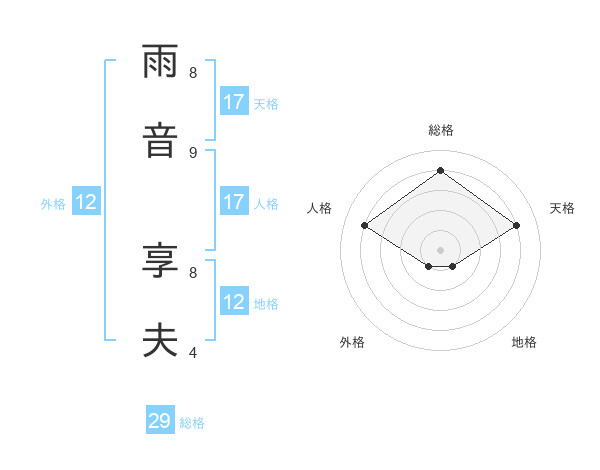 雨音 享夫さんを姓名の画数から五運を鑑定