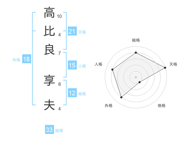 高比良 享夫さんを姓名の画数から五運を鑑定