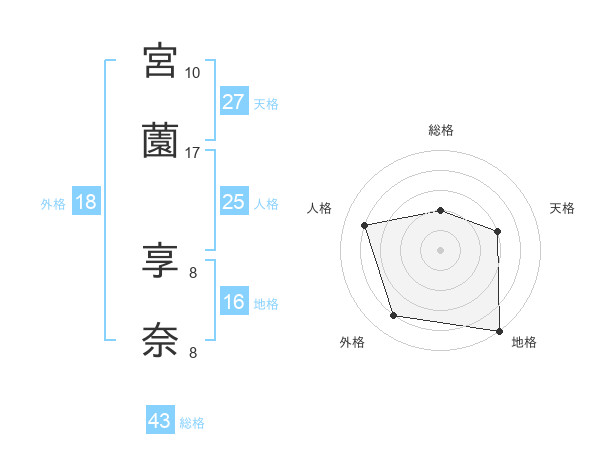 宮薗 享奈さんの天格は27画の3点!