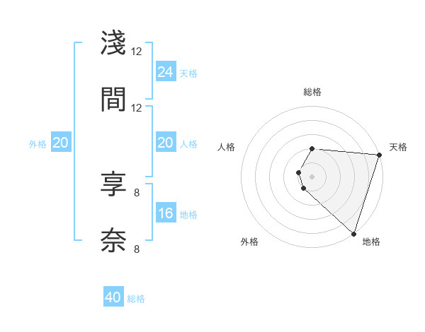 淺間 享奈さんを姓名の画数から五運を鑑定