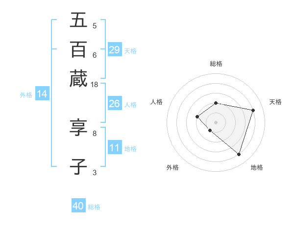 五百蔵 享子さんの天格は29画の4点!