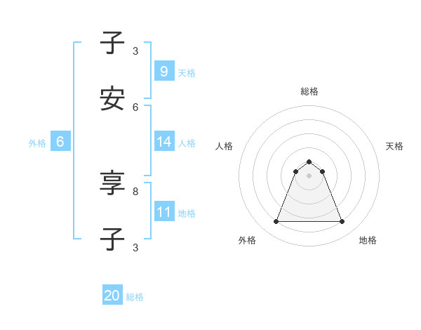 子安 享子さんの総格は20画の1点!