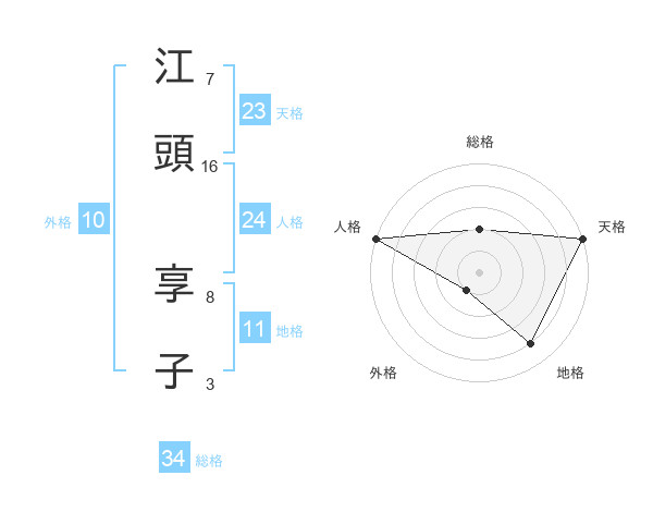 江頭 享子さんの総格は34画の2点!
