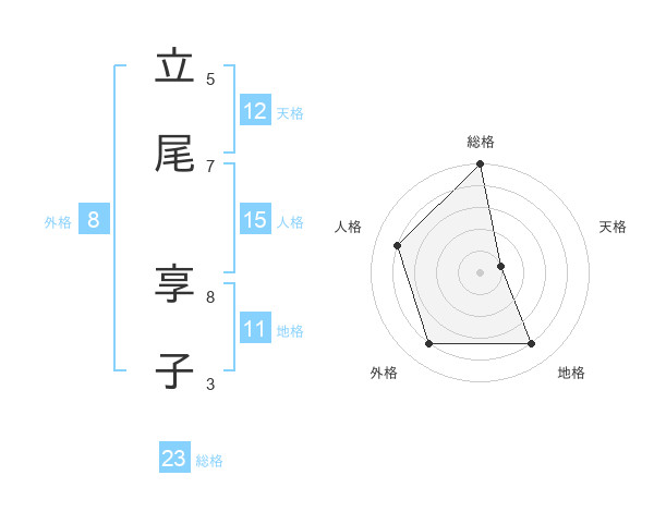 立尾 享子さんの天格は12画の1点!