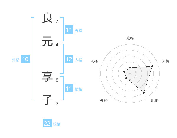 良元 享子さんの天格は11画の4点!