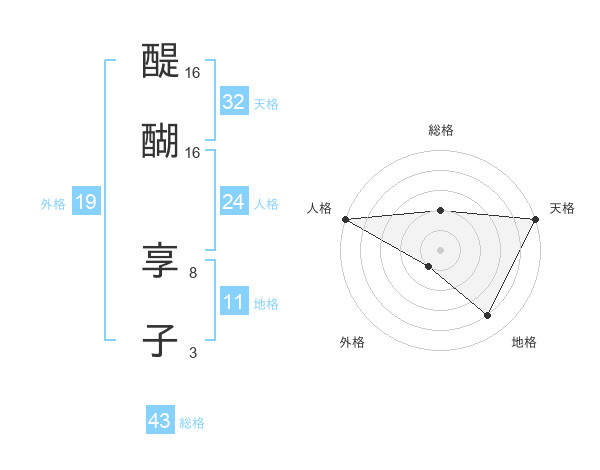 醍醐 享子さんを姓名の画数から五運を鑑定