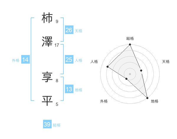 柿澤 享平さんの総格は39画の5点!