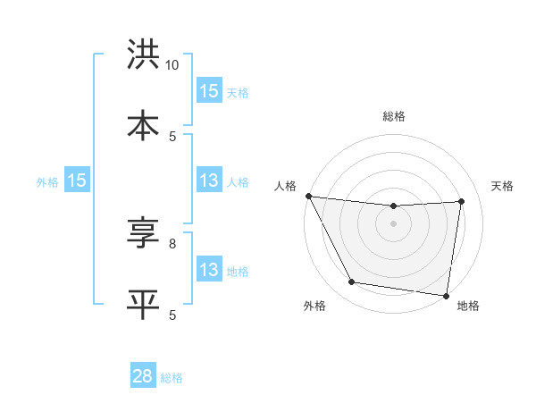 洪本 享平さんの天格は15画の4点!