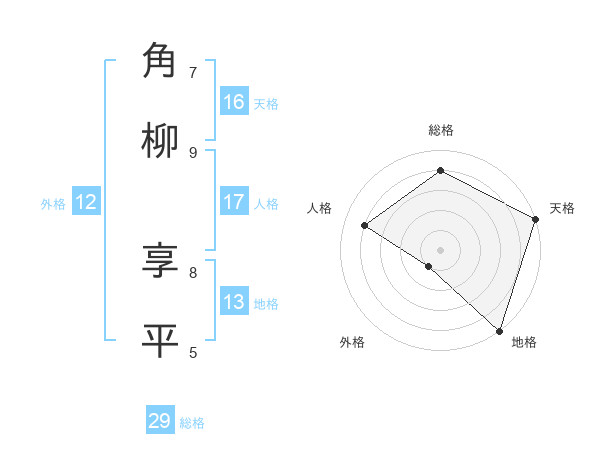 角柳 享平さんの総格は29画の4点!