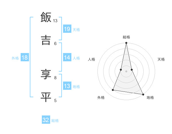 飯吉 享平さんの総格は32画の5点!
