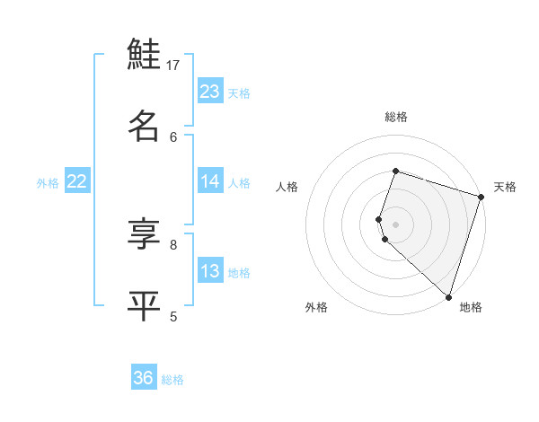 鮭名 享平さんの天格は23画の5点!