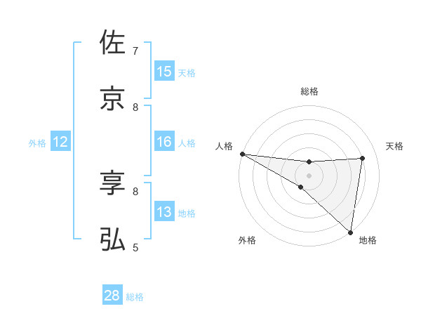 佐京 享弘さんの天格は15画の4点!