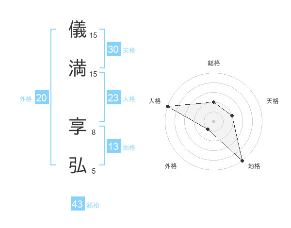 儀満 享弘さんを姓名の画数から五運を鑑定