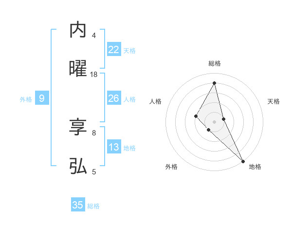 内曜 享弘さんを姓名の画数から五運を鑑定