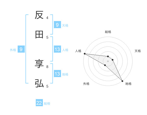 反田 享弘さんの地格は13画の5点!