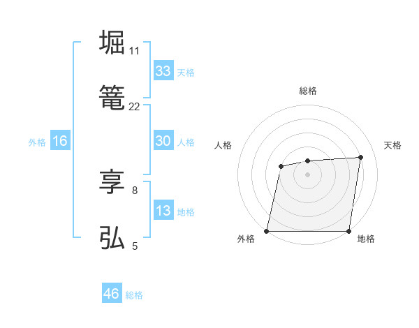 堀篭 享弘さんの総格は46画の1点!