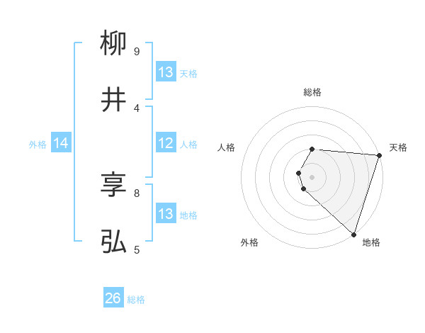 柳井 享弘さんを姓名の画数から五運を鑑定