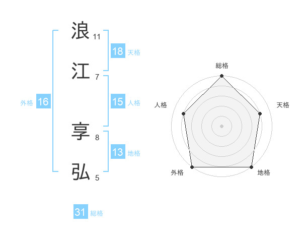 浪江 享弘さんを姓名の画数から五運を鑑定