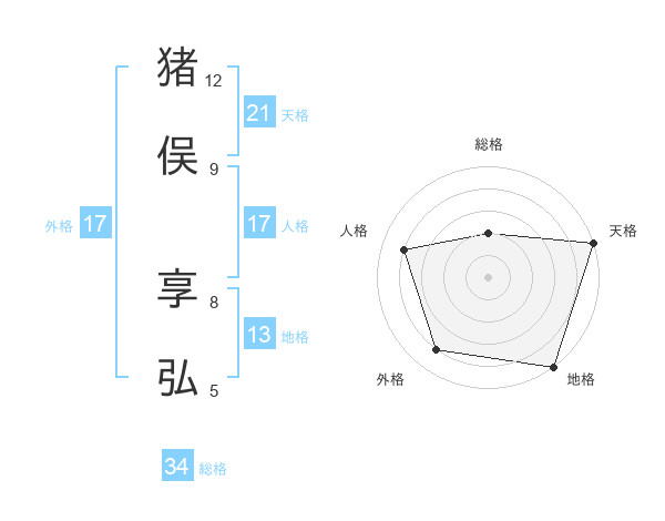 猪俣 享弘さんの天格は21画の5点!