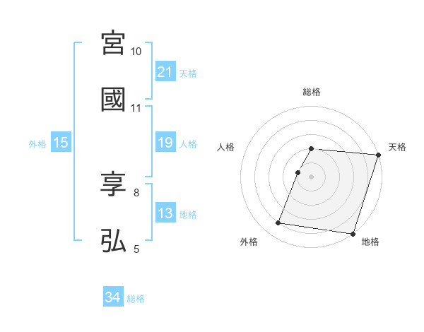 宮國 享弘さんを姓名の画数から五運を鑑定