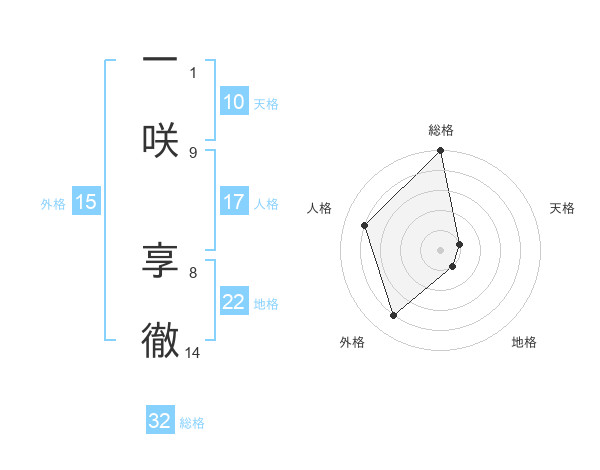 一咲 享徹さんの総格は32画の5点!