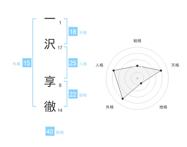 一沢 享徹さんの地格は22画の1点!
