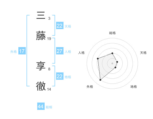 三藤 享徹さんの地格は22画の1点!