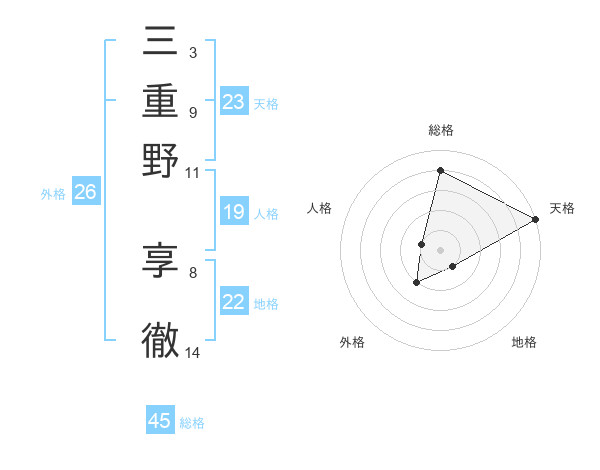 三重野 享徹さんを姓名の画数から五運を鑑定