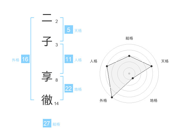 二子 享徹さんの総格は27画の3点!